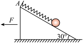 如图,倾角为30°、质量为m的斜面体静止于光滑水平面上。轻弹簧的上端固定在斜面体的顶端A处,下端拴接一质量为