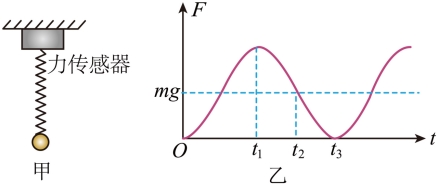 如图甲所示,某兴趣小组的同学将一根轻质弹簧悬挂在力传感器上,弹簧下端悬挂一质量为