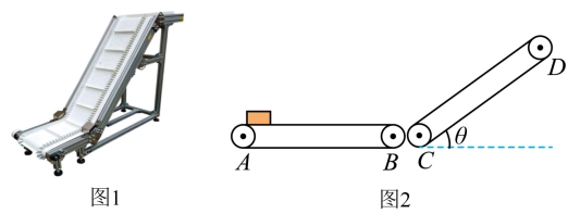 在现代化工厂中,需要利用传送带进行货物的传送和分拣。图1所示为分拣传送装置,它由水平传送带与倾斜传送带组成,图2是该装置的简化图,水平部分AB的长度