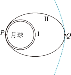 2024年6月4,嫦娥六号完成世界首次月球背面采样,采样后返回时先进入近月圆轨道Ⅰ.再进入椭圆轨道Ⅱ,在轨道Ⅱ的Q点与返回器对接,图中P、Q分别为椭圆轨道的近月点和远月点.已知月球半径为R,嫦娥六号在轨道Ⅰ运行周期为T,Q点离月球表面的高度为h,万有引力常量为G。求:
