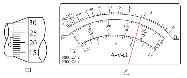 (2)用多用电表粗略测量了金属丝的电阻,测量时,将选择开关旋至“×1”挡位,进行欧姆调零后测量,多用电表的读数如图乙所示,则金属丝的阻值约为Ω;