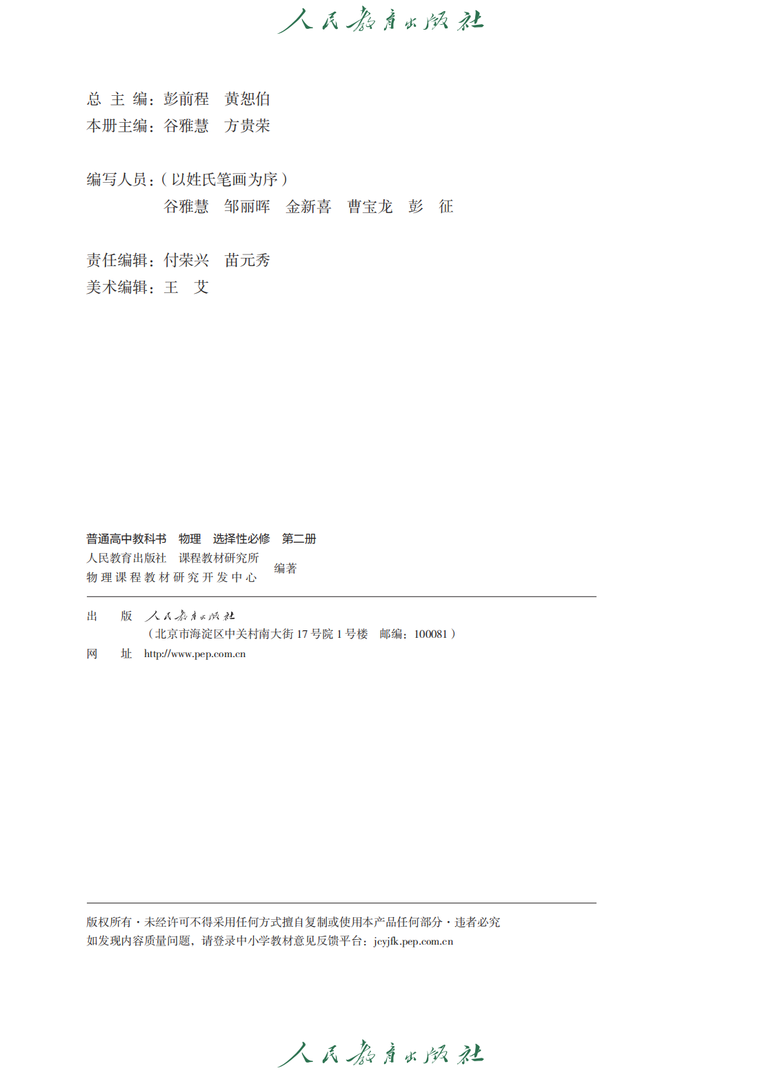 高中物理选择性必修2.人教2024版