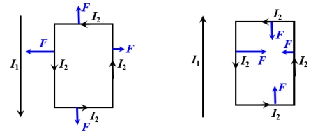 同向电流相互吸引,反向电流相互排斥。即使电流I不相等,相互作用力也是相等的。
