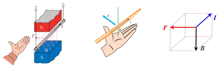 让磁感线垂直穿过掌心,使四指指向电流的方向,则拇指指向是通电直导线所受安培力的方向。