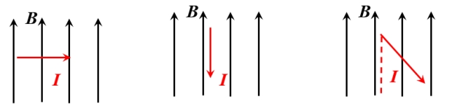 (c) 斜交:当0°<θ<90°时,电流I在垂直于B的方向的分量受到安培力,即F=IlBsinθ。