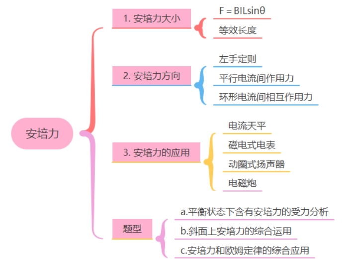 3. 矢量叠加性:通电导线受到多个磁场的作用下,所受安培力是各个磁场单独作用力的矢量叠加。
