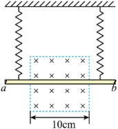 水平挂起,弹簧间有沿水平方向垂直于纸面向里的匀强磁场,磁场区域宽度