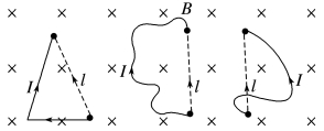 推论:对任意形状的闭合平面线圈,当线圈平面与磁场方向垂直时,线圈的有效长度l=0,