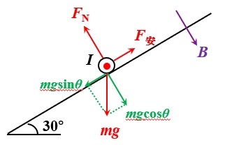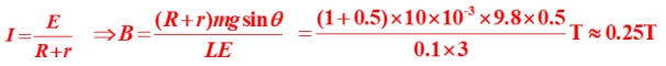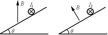 【解析】由于斜面光滑,磁场竖直向上,安培力水平向右,沿斜面方向分力平衡:mgsinθ=BI1Lcosθ
