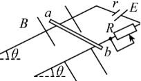 的斜面上,固定一宽L的平行光滑金属导轨,在导轨上端接入电源和滑动变阻器。一质量m的金属棒