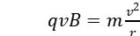 (2)带电粒子所受的洛伦兹力为:F = qvB 洛伦兹力提供向心力,故