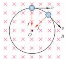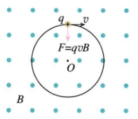 ①磁场的作用:在洛伦兹力作用下使粒子做匀速圆周运动。