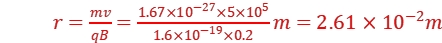 例2.一个质量为 1.67×10-27kg、电荷量为 1.6×10-19C 的带电粒子,以 5×105m/s 的初速度沿与磁场垂直的方向射入磁感应强度为 0.2 T 的匀强磁场。求: