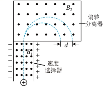 ④偏转磁场 (B2) :在磁场中只受洛伦兹力的作用,粒子在洛伦兹力作用下沿半圆轨迹运动。