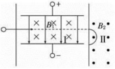 不同的带电粒子匀速通过速度选择器后就能进入磁感应强度为B2的匀强偏转磁场,磁场方向垂直于纸面向里。
