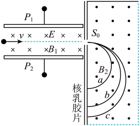 (4)沿a、b、c轨迹运动的离子带电量相同,测得他们在胶片上成像处到S0的距离之比为2∶3∶4,