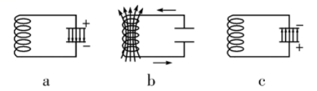 c.因为线圈有自感效应,它会阻碍电路中的电流变小.所以电流会保持原来的流向,并逐渐减小到零.所以当自感线圈给电容器反向充电结束,回路中电流从最大减为0,两极板电荷量从0变回最大.