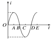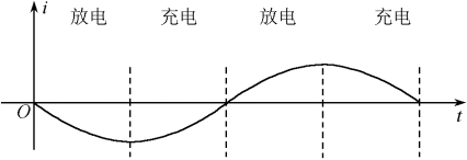 【解析】 由题图可知,振荡电流随时间按正弦规律变化.在OA时间内电流增大,电容器正在放电,电场能逐渐转化为磁场能.在AB时间内电流减小,电容器正在充电.在时刻C电流最大,为电容器放电完毕瞬间,带电荷量为零。
