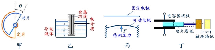 等)的变化能引起上述某个因素的变化,从而引起电容的变化,那么,通过测定电容器的电容就可以确定上述物理量的变化,作这种用途的电容器称为电容式传感器。