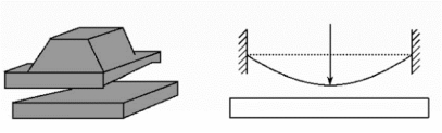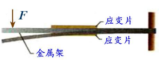 两个应变片粘贴在弹性梁的下表面。当弹性梁右端受力向下弯曲时,