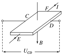 一个矩形半导体薄片,在其前、后、左、右分别引出一个电极,如图所示,沿PQ方向通入电流I,垂直于薄片加匀强磁场