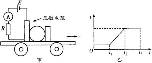 6. 压敏电阻的阻值随所受压力的增大而减小,有位同学利用压敏电阻设计了判断小车运动状态的装置,其工作原理如图甲所示,将压敏电阻和一块挡板固定在绝缘小车上,中间放置一个绝缘重球。小车向右做直线运动过程中,电流表示数变化与时间t的关系如图乙所示,下列判断正确的是( )