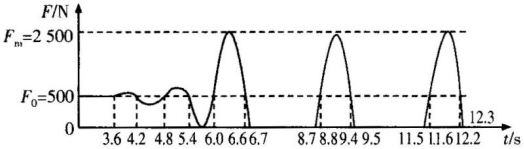 6. 在奥运会上,运动员参加蹦床项目的比赛。假设表演时运动员仅在竖直方向上运动,通过传感器将弹簧床面与运动员间的弹力随时间变化的规律在计算机上绘出如下图所示的曲线,当地的重力加速度g取10 m/s2,依据图象给出的信息,回答下列物理量能否求出,如能求出,写出必要的运算过程和最后结果。