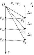 因为平抛运动的加速度为恒定的重力加速度g,所以做平抛运动的物体在任意相等时间间隔Δt内的速度改变量Δv=gΔt相同,方向恒为竖直向下,如图所示 |