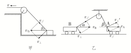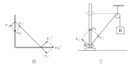 拓展:若两物体运动过程中不是通过绳或杆连接,而是直接接触,则两物体在垂直接触面方向的分速度相等。也可以将这种情况看作两物体在接触处有一根极短的杆或绳。