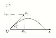 以斜上抛运动的抛出点为坐标原点O,水平向右为x轴的正方向,竖直向上为y轴的正方向,建立如图所示的平面直角坐标系xOy。