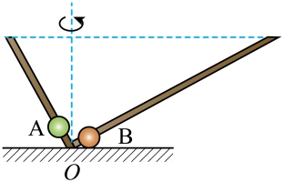 如图所示,竖直平面内有一L型光滑细杆,杆上套有小球A、B。细杆可以绕过底部O点所在的竖直轴转动,若转速缓慢减小,下列说法正确的是( )