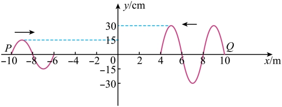 两列机械波在同种介质中相向而行,P、Q为两列波的波源,某时刻的波形如图所示,已知波源P产生的波传播速度为10m/s,下列判断正确的是( )
