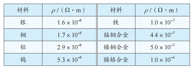 (4)常见金属在20℃的电阻率