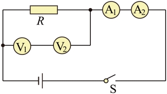 D.图中可知,两电压表串联再去R并联,故R的电压为两电压表读数之和,由串并联关系可知,A1电流大小等于通过R的电流与通过两电压表的电流之和,故通过