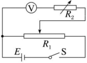2.为测量电压表内阻的阻值,电路图如下图所示,首先电阻箱R2阻值调为0,闭合开关S,调节滑动变阻器使电压表满偏。