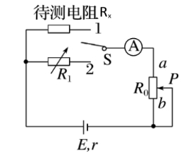 | 单刀双掷开关分别与1、2相接,调节电阻箱R1,保证电流表两次读数相等,则R1的读数即等于待测电阻的阻值 | 无 | 无 |