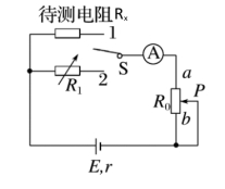 为测量电阻Rx的阻值,电路图如下图所示,先将开关S接1,滑动滑动变阻器使电流表指针指向适当的位置