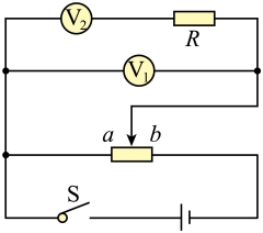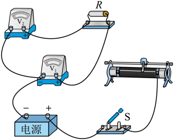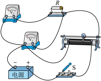 为量程为6V的电压表,实验时,按正确的操作,闭合开关后,调节滑动变阻器及电阻箱的阻值,使两电压表的指针偏转均较大,若调节后,电压表