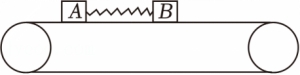 ,顺时针转动,物块A,B中间有一根轻弹簧,A的质量为1kg,B的质量为2kg,A与传送带的动摩擦因数为