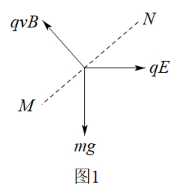 7.空间中存在垂直纸面向里的匀强磁场B与水平向右的匀强电场E,一带电体在复合场中恰能沿着MN做匀速直线运动,MN与水平方向呈