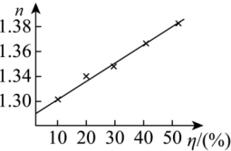 为测糖水的折射率与浓度的关系,设计如下实验:某次射入激光,测得数据如图,则糖水的折射率为。
