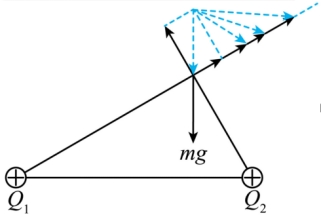 根据平衡条件可知,检验电荷受到的重力和两点电荷的库仑力组成一个封闭的三角形。