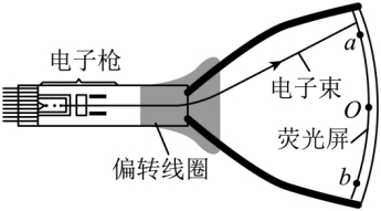 显像管原理的示意图如图所示,当没有磁场时,电子束将打在荧光屏正中的O点,安装在管径上的偏转线圈可以产生磁场,使电子束发生偏转。设垂直纸面向里的磁场方向为正方向,若要使电子打在荧光屏上的位置由a点逐渐移动到b点,下列变化的磁场能够使电子发生上述偏转的是( )