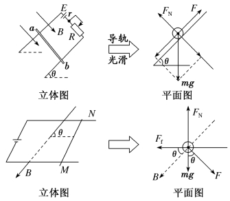 (2)变三维为二维,如侧视图、剖面图或俯视图等,并画出平面受力分析图,其中安培力的方向要注意