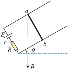方向竖直向下的匀强磁场中,导轨中接入电动势
