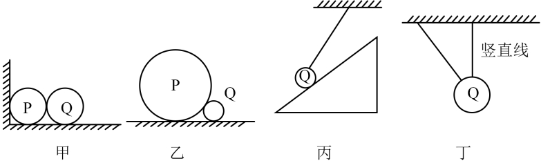 下列甲、乙、丙、丁所示各图中,所有接触面都是光滑的,且物体均保持静止。则Q球受两个弹力的有( )