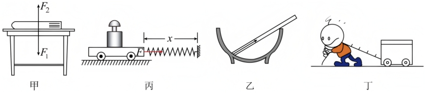 D.丁图中,轻绳的拉力沿着绳并指向绳收缩的方向